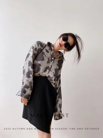2024新作 ゆったりレトロプリント 豹柄 長袖インナーアウター ブラウス可愛い トップス お肌に優しい ブラウス 韓国ファッション レディース 服 紫外線対策 ロンt シフォンブラウス