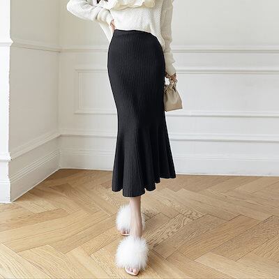 【2枚購入で 2oo円OFF!】秋冬フィッシュテールスカート ハイウエストカットスカート女子丈の毛糸A字大振り プリーツスカート ロングスカート 可愛い ハイウエスト タイトスカート 流行り 百掛け