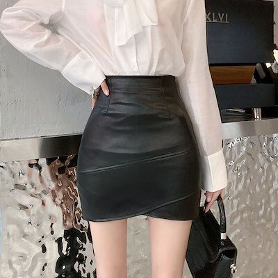 【2枚購入で 2oo円OFF!】新作 おしゃれ ハイウエスト スカート 不?? PU スカート ミニスカート 着痩せ 百掛け