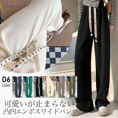 【急速出荷】接触冷感 ワイドパンツ パンツ レディース 凸凹 エンボス ジャガード 春 夏 リブ ワイドパンツ 部屋着 ゆったり リラックス ワイド ウエストゴム カジュアル 体型カバー