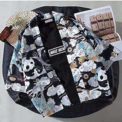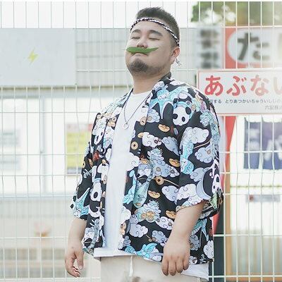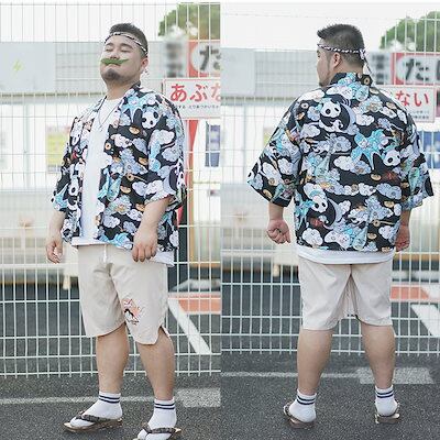 羽織 メンズ 着物カーディガン 浴衣風 開襟シャツ パンダ柄 七分袖 トップス カジュアル 薄手