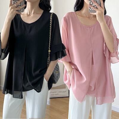 2023 ブラウス 超特大サイズ 長袖 半袖2type 大人 可愛い Tシャツシフォンブラウス春夏 大きいサイズ シフォン シアー トップス トップスレディース きれいめ