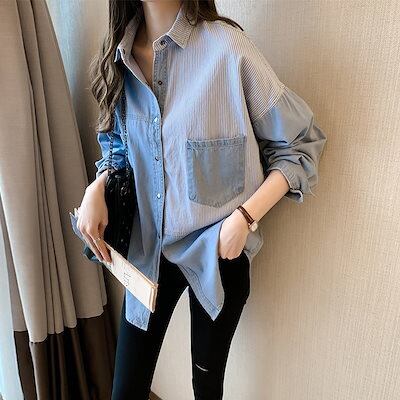 2023 ブラウス 長袖 新作 デニムシャツ シャツ 切り替え トップス ゆったり カジュアル 春秋物 通勤 人気 トップスレディース きれいめ
