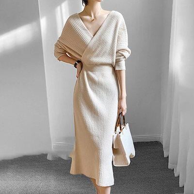 秋 新作 ロング丈ワンピース 韓国ファッション 着痩せ 無地 可愛い 長袖 半袖 ワンピース