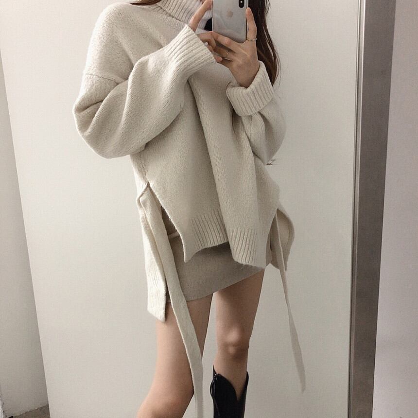 【Women】2022年新作 韓国風レディース服 トップス タートルネック ニット セーター エレガント 純色 厚い