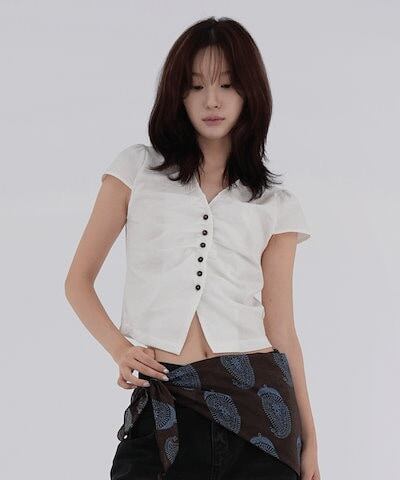 五島 フロント シャーリング ブラウス
