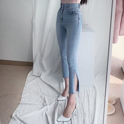 ハイウエスト・ツーボタン・カッティング・スリット・ブーツカット・ジーンズ