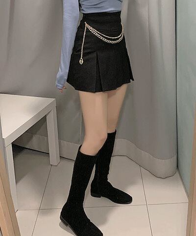 チェーンプリーツプリーツプリーツミニスカートパンツ(ベージュ/ブラック)