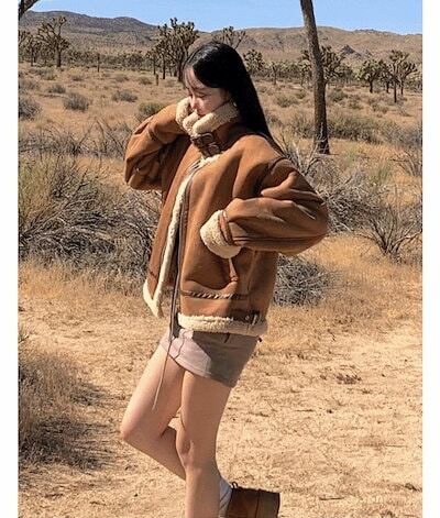 [全体ボアフリース裏地/暖かい] スエード バックル ムートン ジャケット