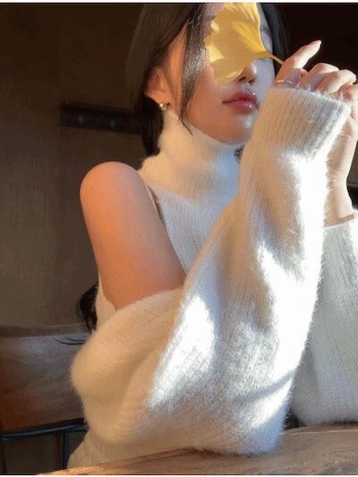 [年末ルック/安いX] タートルネック アンゴラ ボレロ ニット セット