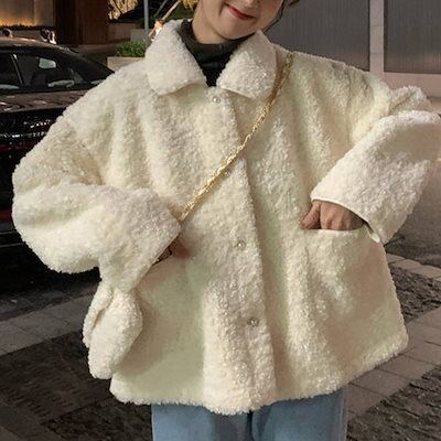 冬アウター 緩い2024新しい秋と冬の学生のショートジャケットの肥厚ぬいぐるみジャケット女性