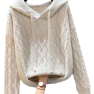 ニットセーター 新作フード付き厚手ニットセーター女性ジャンパー秋冬暖かいルーズインナーセーター