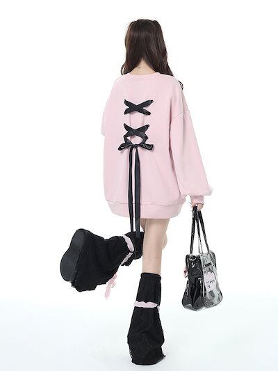パーカー 愛の蝶ネクタイのトレーナーの女性の秋と冬の緩い学生の長袖トップス