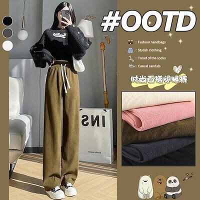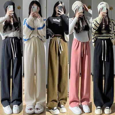 ワイドパンツコーデュロイハイウエストドロップ感モップ地カジュアルパンツゆったりストレートパンツ
