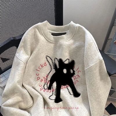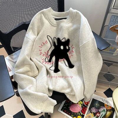 パーカー黒子猫のゴーストピンクのアルファベットプリントがおしゃれな衛衣キャップなしの個性的なトップス
