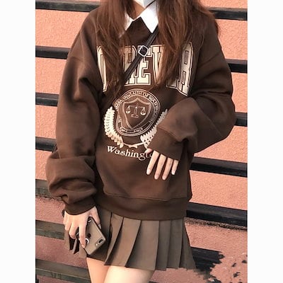 パーカーレトロな丸首の衛衣女性のゆったりとした上着のコート