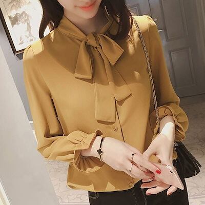 ブラウス プラクス2024新作春秋シャツ韓国版今っぽシアーシャツ ゆったりリボントップスシフォンシャツ女性長袖