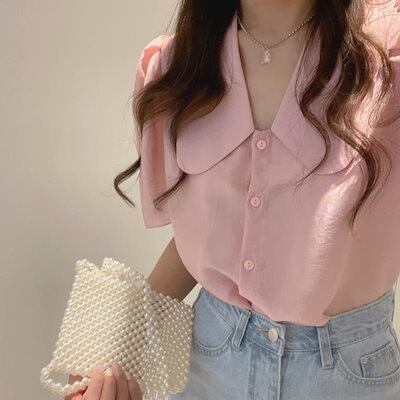 ブラウス プラクス2024新作 今っぽシアーシャツ 韓国ファッションッ オールインワンシンプルで超かわいい純色ゆったり半袖シャツ女