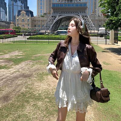 2024新作優しい雰囲気の白質感ワンピースVネック長袖スカート 夏の新作 愛されドッキングワンピース 通勤 便利!2wayワンピース 韓国ファッションッ