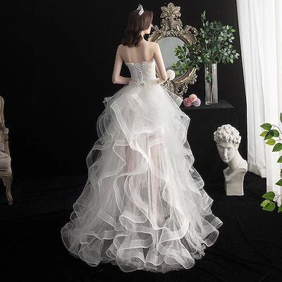 パーティードレス 2024夏秋ショート 前後ロング 小さいトレーリングメイン ウエディングドレス 成人式 学生 パフィーケーキショートスカート成人式 演奏会 発表会 卒業式