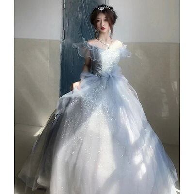パーティードレス ブルーイブニングドレス 女性用 2024年 成人式成人式 演奏会 発表会 卒業式