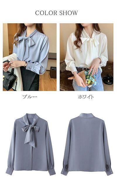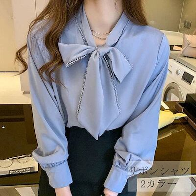 ブラウス プラクスシャツレディース長袖トップスブラウスリボン付きシフォンおしゃれボタン留めコーデ着まわせる無地上品オフィス事務所通勤OL