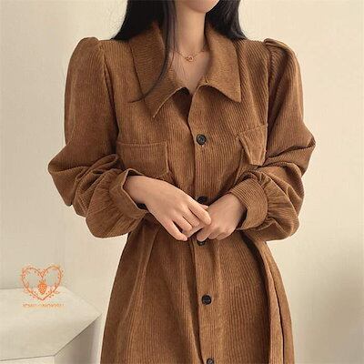 ワンピース ロング コーデュロイ レディース カーディガン ポワン袖 羽織り 長袖 春 秋 きれいめ ゆったり 春ワンピース ワンピ 大人 体型カバー 前開き