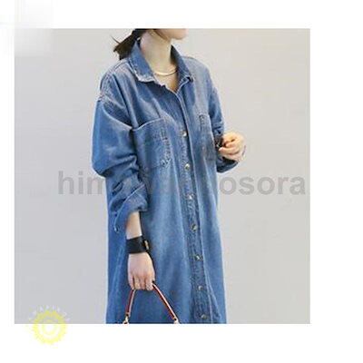 ワンピース レディース デニムワンピース シンプル 長袖 ロングシャツ ロングtシャツ uvカット 体型カバー お洒落 着痩せ カジュアル ゆったり