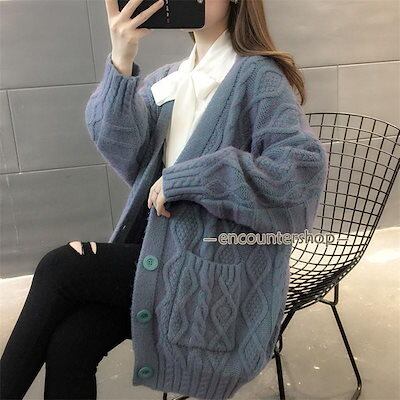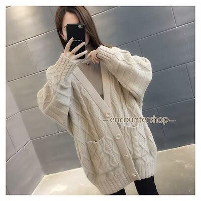 ニットカーディガン レディース 前開き ニット カーディガン アウター ケーブル編み ゆったり 厚手 上着 長袖 防寒 暖か 秋冬 部屋着 おしゃれ