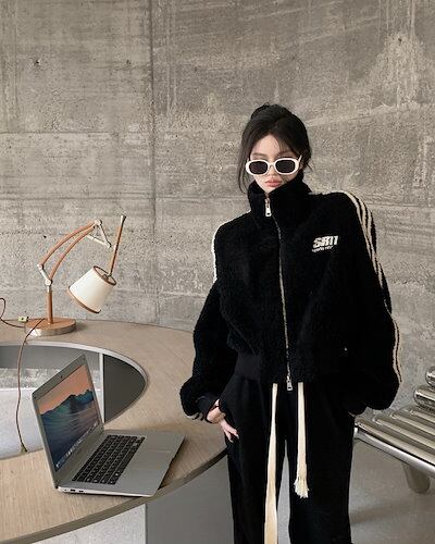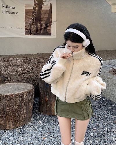 2024 秋冬 韓国 かわいい レディース ハイネック スタンドネック アウター ブルゾン お出かけ 長袖セクシーシルエットトップスサイド冬カジュアルファッション系サイズお出かけフル丈トラック