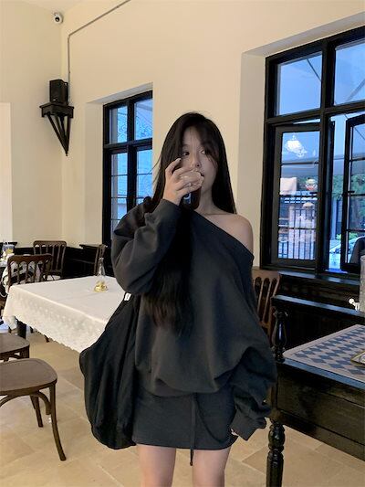2024秋冬スウェット セットアップ トレーナー オフショルダー トップス キュロットパンツ ショートパンツ ルーズ 長袖 レトロ 韓国ファッション レディース