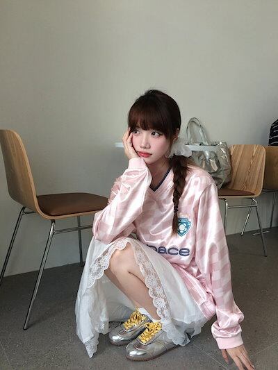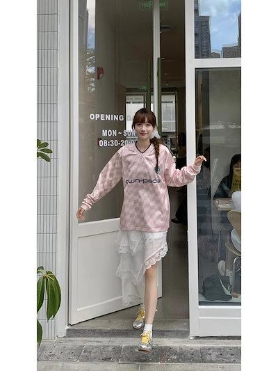 2024 秋冬 トップスバイカラー長袖TシャツかわいいK-POP黑白レディース韓国風ロゴ衣装ルーズゆったりカジュアルおしゃれサイズ袖 シルエットファッション系サイドシャツフット春スポーツVネックT