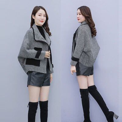 【上品】秋冬 アウター ジャケット ショートチェック 厚手 ラシャ 中綿コート カーディガン 韓国ファッション ゆったり レディース トップス 通勤 体型カバー