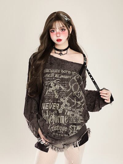 2024 秋冬 韓国 女度を格上げ tシャツ ファッション系 トップス 韓国系 長袖 ショート薄手フィットプリントレイヤード重ね着肌見せ女っぽハイフレンチサイズ タイト丈 レディースシルエット T