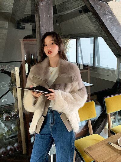 韓国ファッション 毛皮コート 冬新しい ショート丈トップス ジャケット 厚手 フェイクファー 高級感 レディースアウター 羽織り 体型カバー 上着