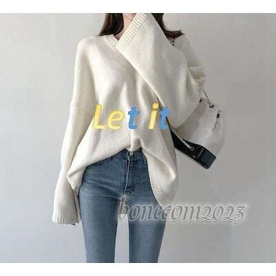 トップス ニット 韓国風 体型カバー ネック レディース セーター 秋冬 ゆったり 長袖