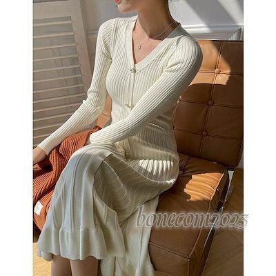 長袖 セーター 羽織 無地 おしゃれ ニット 冬 シンプル トップス 秋 ワンピース ゆるニット オフィス ゆったり ニットワンピース ロング レディース 春