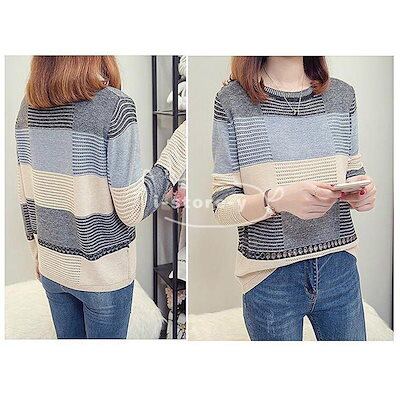 ゆったりセーター 配色ニット 秋冬代長袖 代 トップス プルオーバー レディース ハイネックセーター 韓国風 ニットセーター