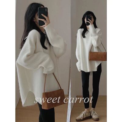 フリーサイズ 伸縮性あり レディース 着やすい 秋冬 長袖 ゆったり アウター カジュアル インナー 色 代代 ニットセーター