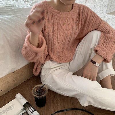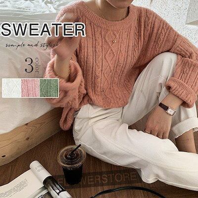 秋冬 カシュクール 伸縮性 カジュアル 着やすい 棉 着痩せ ゆったり 上品 エレガント セーター レディース トップス 長袖 ニット 韓国風 無地 ファンション