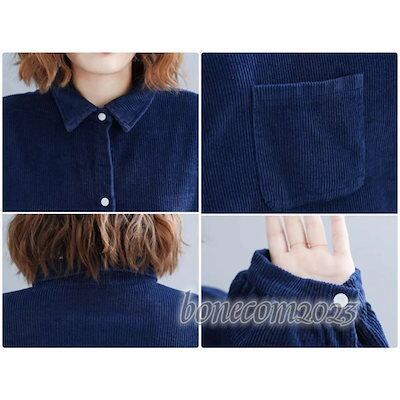 秋冬 お出かけ 大人可愛い デート ビッグシルエット レディース オフィス シャツ カジュアル キュート 長袖 コーデュロイ エレガント 無地 トップス