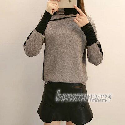 レディース秋冬 韓国風 長袖 色 ニットセーター トップス タートルネック ニットソー ハイネック 配色 通勤 ニットセーター ニットソー 上品