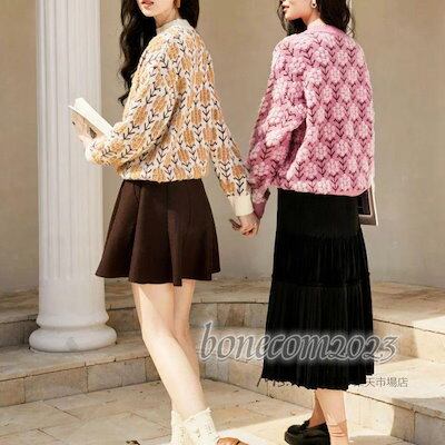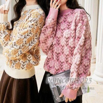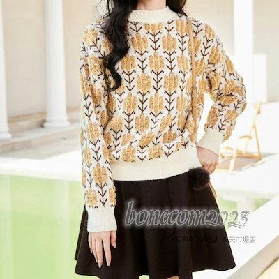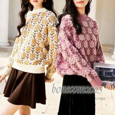 花刺繍 オシャレ韓国風 ショット丈セーター 厚手 ゆったりプルオーバー ハイネック 大人ニットインナー レディース ニットトップス 秋冬代長袖セーター