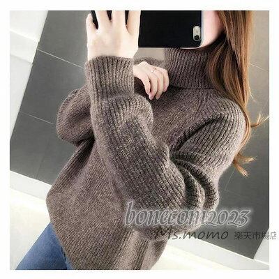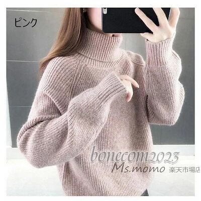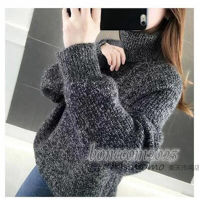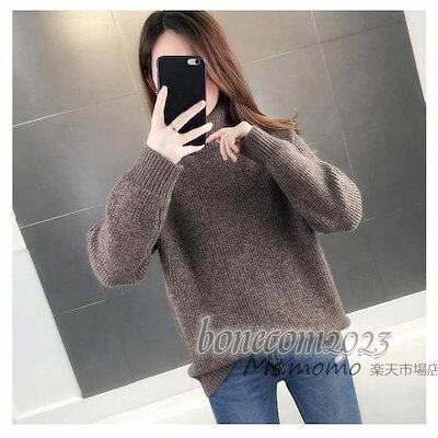 ハイネックショット丈プルオーバー 代 レディース ニットトップス 大人韓国風 無地セーター ニットトップス ゆったりにトソー 秋冬代長袖 オシャレ