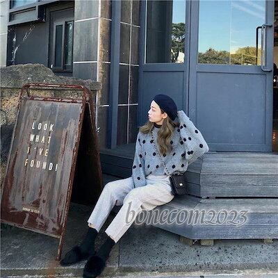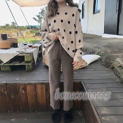 丸首 レディース 無地 ニットトップス 代 韓国風 着痩せ ドット柄 秋冬 ニット プルオーバー カットソー ニットソー ニットセーター 水玉 おしゃれ きれいめ