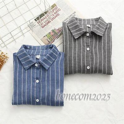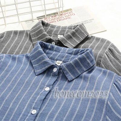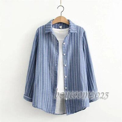 ストライプ ブラウス コットン 長袖 秋冬 重ガーゼ レディース きれいめ 冬 リラックス 秋 シャツ 綿 カジュアル ストライプ お洒落 トップス シャツブラウス