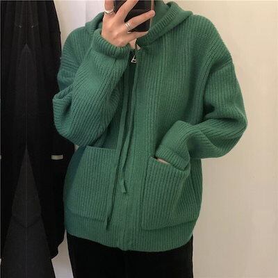 人気なリプニット 無地ニットトップスレディース秋冬服パーカー韓国ファッションカーディガン怠惰風カーディガン厚手 母の日