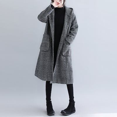 冬アウター 韓国ファッション 秋冬 フード付き 千鳥格子 トレンチコート ロング コート ラシャ 気質 カジュアル レディース ジャケット トップス