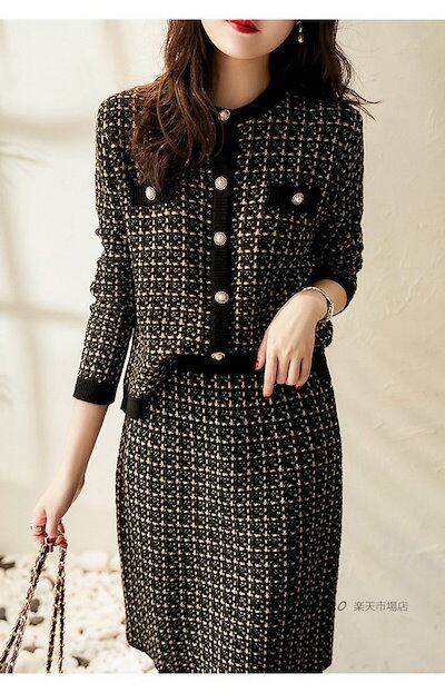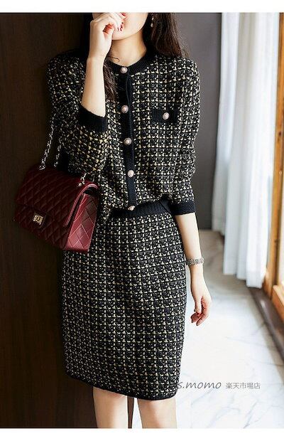 ニットセットアップ レディース 入学式 チェック柄 40代 上品 通勤 秋冬 ニットカーディガン セーターセットアップ 着痩せ 卒業式 ニットタイトスカート オシャレワンピース 長袖