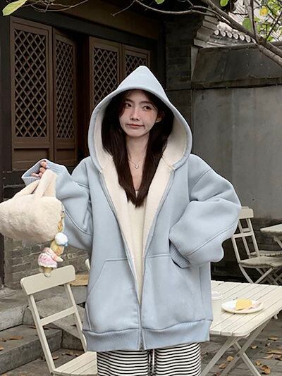人気ボアアウター 冬人気 厚手 毛皮アウター裹起毛 韓国 もこもこコート レディース 防寒 暖かいファーアウタースウェットフード付き体型カバー百掛け 裹起毛ジャケット フリースで決まり!